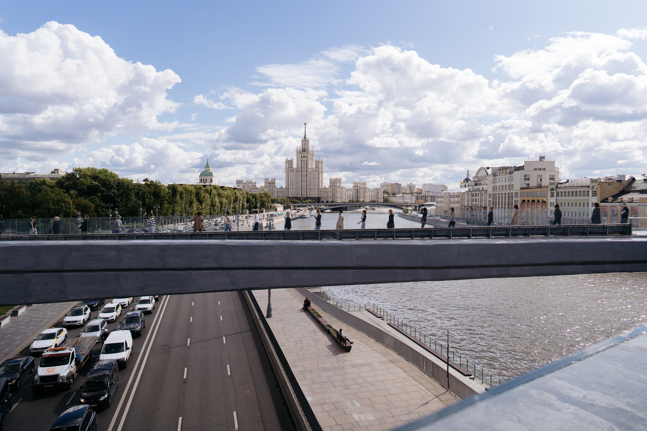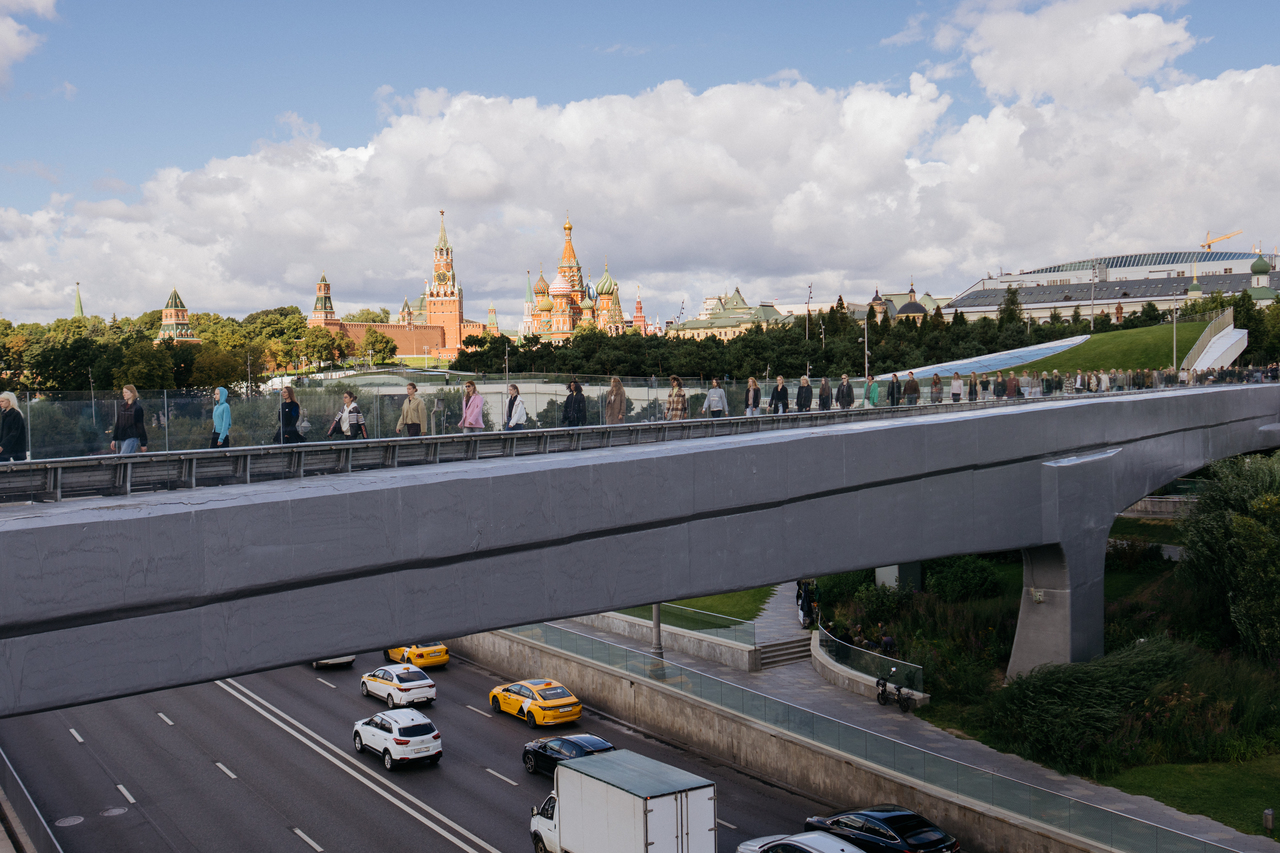 Бэкстейдж показа на Московской неделе моды в парке Зарядье, Парящий мост